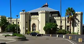 Greenway’s works include Hyde Park Barracks, extensions to First Government House, the stables for a projected new Government House (condemned for their ‘useless magnificence’ by a visiting British official, the building is now home to the Sydney Conservatorium of Music),[8] and St James' Church, Sydney, which was chosen as one of Australia’s only two man-made ‘treasures’ by Dan Cruickshank in the BBC series Around the World in 80 Treasures.[9] He submitted designs for the first Catholic church in Sydney, St Mary's but they did not match the ambitious scale envisaged by the priest Fr Therry, and were not proceeded with.[10]