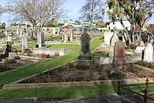 Seafield died on 3 December 1888 from a heart condition.[2] He is buried at the Oamaru Old Cemetery.[7] He was succeeded by his oldest son in the earldom, James Ogilvie-Grant, 11th Earl of Seafield, who at the time was twelve years old.[2] The 11th Earl was fatally wounded in World War I in 1915, and was succeeded in the barony of Strathspey, the baronetcy of Colquhoun and as Chief of Clan Grant by his younger brother Hon. Trevor Ogilvie Grant.[8] The earldom and the other subsidiary Scottish peerages could be passed on to female heirs, and were inherited by the daughter of the 11th Earl, Nina Caroline Studley-Herbert.[8]