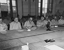 Admiral Low was responsible for the day-to-day operations of the Tenth Fleet and also maintained the liaison with the General Staff of the United States Army, the British Admiralty and the Canadian Naval Headquarters to insure maximum efficiency in combined operations. He coordinated and directed the activities of Allied anti-submarine forces as they systematically tracked down and destroyed German undersea marauders ranging the vast reaches of the Atlantic. Low was also responsible for the protection of Allied shipping in the Eastern, Gulf and Caribbean Sea Frontiers, exercised close control over all convoys under United States cognizance.[23][24]