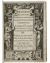 Titlepage of the Dialogos de la Pintura by Carducci, illustrated by Fernández