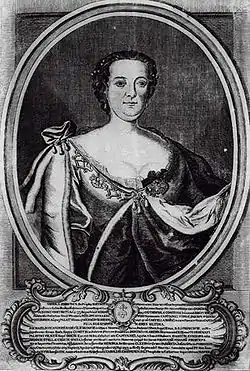 Francesca Ursula Radziwill (February 13, 1705, Chartorysk – May 23, 1753, Navahrudak), was a Polish writer and playwright, the first female writer on the territory of modern Poland and Belarus. She was the Princess (equivalent to Duchess), the last female representative of the Wiśniowiecki noble house and a wife of Michael Casimir Radziwill "Rybonka".