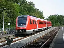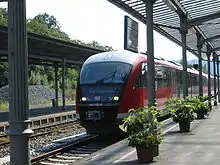 With the delivery of the DB Class 614 in the early 1970s the Saale Valley Railway received its first modern railway vehicles during the Deutsche Bundesbahn (DB) era. These were withdrawn from the line towards the end of the 1980s, and their place was taken for a long time thereafter by Class V 100 diesel locomotives (Deutsche Bahn AG Class 212) again, this time with one normal coach and a driving coach. Around the turn of the century the DBAG recognised that these, almost 40-year-old locomotives and the hardly more recent coaches were no longer up to date. After a short time when old railbuses visited the line, the modern diesel multiple units of DBAG Class 642 became their successors.