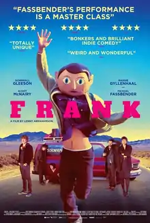 Frank is a 2014 independent black comedy film directed by Lenny Abrahamson, produced by David Barron, Ed Guiney and Stevie Lee and written by Jon Ronson and Peter Straughan. It stars Michael Fassbender, Domhnall Gleeson, Maggie Gyllenhaal, Scoot McNairy, and François Civil.