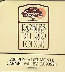 On May 19, 1949, 30 Carmel Valley residents met with the postmaster Norman Marshall at the Las Laureles Lodge to discuss a postal name change. It was decided that mail would be addressed to "Carmel Valley, Calif." instead of "Carmel Valley Route, Robles del Rio, Calif.," since Robles del Rio was relatively unknown at the time compared to Carmel Valley.[24]