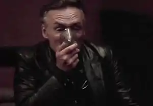 Frank Booth is a fictional character and the main antagonist in David Lynch's 1986 psychological thriller Blue Velvet, portrayed by Dennis Hopper. A violent drug-dealer, he has kidnapped the family of lounge singer Dorothy Vallens, holding them hostage in order to force her into becoming his sex slave. Their encounters are characterized by Frank huffing an unknown gas from a tank he carries with him. This causes him to exhibit a split personality between two individuals he identifies as "Baby" and "Daddy", whose personas he assumes to engage in acts of ritualistic rape. One of Frank's associates is a police detective nicknamed "The Yellow Man" (for his distinctive yellow sport coat), who helps Frank by killing rival drug-dealers. The Yellow Man later steals their supplies from the evidence room, so Frank can sell them himself.