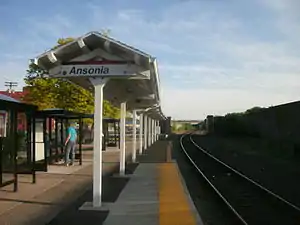 Ansonia is a city in New Haven County, Connecticut, United States. Located on the Naugatuck River, it is immediately north of Derby, and about 12 miles (19 km) northwest of New Haven. The city is part of the Naugatuck Valley Planning Region. The population was 18,918 at the time of the 2020 census.[2] The ZIP code for Ansonia is 06401. The city is served by the Metro-North Railroad. Ansonia Station is a stop on the railroad passenger commuter service's Waterbury Branch connecting to New York's Grand Central Terminal. Ansonia also is served by the Connecticut Transit bus carrier. Connecticut Route 8 serves Ansonia (Northbound, Exit 18; Southbound, Exit 19).