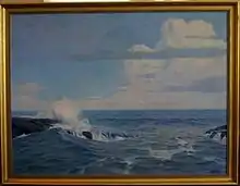 Handlen was a Fellow of The American Society of Marine Artists for 22 years. He illustrated "Seapiece The Story of a Maine Boy" by Will Beale and "The Story of Maine for Young Readers" by Melville Freeman and Estelle Hale Perry. His pastels, oil paintings and pen and ink drawings are extensively owned by private and corporate collectors including The Kennebunkport Historical Society,[3] The Brick Store Museum, MBNA, Sears Roebuck and The St. Botolph Club in Boston. He turned 100 in September 2016,[4] and 105 in 2021.[5][2]