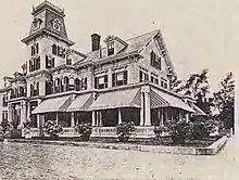 Later, Jones became involved with the Republican Party. He was disgusted over William Jennings Bryan's stand on Free Silver. He became interested in railroads and hotels. Jones rebuilt the stately Rockingham Hotel in Portsmouth and enlarged the Hotel Wentworth (now Wentworth-by-the-Sea) in New Castle. Also in Portsmouth, Jones built a mansion in the Second Empire style, with gardens and a horse track, completed in 1876.[1] He was a presidential elector on the Republican ticket in 1900. He died in Portsmouth, New Hampshire, on October 2, 1902, and was buried in Harmony Grove Cemetery.