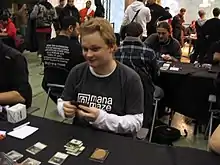 Frank Karsten (born 19 June 1984[1]) is a Dutch Magic: The Gathering player. His achievements include three Pro Tour Top 8 appearances, including a second-place finish at the 2005 World Championships, and seven Grand Prix Top 8s. He is a member of the Magic: The Gathering Hall of Fame.[7] Karsten is considered one of the game's foremost analytical minds and writers.[8] He has since been considered mostly retired from Magic Pro Play, and has become a writer for Wizards' Magic event coverage.