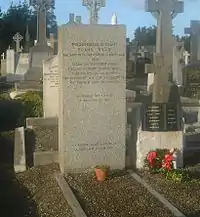 In 1963, historian Enno Stephan located Ryan's grave in Dresden, German Democratic Republic. Three volunteers of the International Brigades, Frank Edwards, Peter O'Connor and Michael O'Riordan travelled to East Germany as a guard of honour to repatriate Ryan's remains in 1979. On 21 June his remains arrived in Whitefriar Street church – his local church when he was in Dublin. The church was packed with all shades of Republican and left-wing opinion, as well as those from his past such as the Stuarts, the Clissmanns, Peadar O'Donnell (who spoke at the service), George Gilmore, and ex-comrades and sympathizers from all over the world. The cortege on its way to Glasnevin Cemetery halted at the GPO in memory of the dead of 1916. His coffin was borne to the grave in Glasnevin Cemetery by Irish veterans of the Spanish Civil War, Frank Edwards, Peter O'Connor, Michael O'Riordan and Terry Flanagan. Con Lehane delivered the funeral oration while a piper played "Limerick's Lamentation".[28] He is buried next to Eamonn MacThomais.