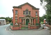 - Llanidloes. Broad Street, Town Hall, Shayler and Ridge 1908. Faced in Cefn stone from Minera.[14]