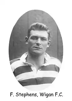Frank Stephens was born in Drybrook, Gloucestershire[3] but brought up in Blackwood, Monmouthshire. Prior to his Wigan rugby league career he had played rugby union for Bargoed, and subsequently joined Cardiff RFC in 1923. During this period he also played for Captain Crawshay's Welsh XV select tours from 1922 to 1925. His rugby league career started when invited to sign for Wigan RFC in 1925.