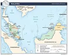 In 1945, Frank TM White was posted to Malaya as a civilian with the British Military Administration. He was engaged primarily in rehabilitation of the tin mines, and writing mining law.[9] His assignment was to address the impact of the scorched earth policy which had rendered many mines inoperable.[17] Given its enormous economic importance, this required immediate attention to tin mining. He traveled to mining districts to inspect their state of repair, and developed a scheme for the return of equipment from Japanese centres of utilization. Military administration ended in March 1946, and White's post reverted to H.M. Colonial Mines Service where his role called upon his knowledge of mining law, policies and practices. To adjudicate on legal matters, he qualified as a Magistrate in the field of mining law, with responsibility for a Warden's Court. He developed policy documents to guide mining practices. He reported on specific regions, such as the Borneo Territories, and at times administered the mining industries of Selangor, Negri Sembilan and Malacca, three of the principal mining states of the Malayan Federation (which came into being on 1 February 1948, as successor to the initial Malayan Union which had proven to be politically unsustainable). Times became more turbulent in 1948, with the onset of guerrilla warfare by the Malayan National Liberation Army, setting in motion what became known as the Malayan Emergency. Tin mines and rubber plantations were especially targeted, primarily because of their economic value and relative isolation.[18][19] In 1949, while still based in Malaya, he served briefly as mining adviser to Siam, to appraise and advise on their post-war mining rehabilitation issues.