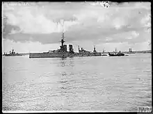 The same year Woolley was accepted for service by the Royal Naval Air Service. He began training in November 1916 and in March 1917 was posted to Dover, attached to a motor boat section.[31] He was promoted to Aircraftman first class and in February 1918 posted to Felixstowe where he was the coxswain of a rescue launch.[32] The RNAS merged with the Royal Flying Corps in April 1918 to form the Royal Air Force and Woolley transferred to the new organisation. He was posted to North Queensferry in Scotland where he worked for Admiral Sir John de Robeck. Robeck was a keen cricketer and Woolley was attached to his flagship HMS King George V.[32]