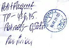 Modern postal clerk script franking with CDS (Ukraine)