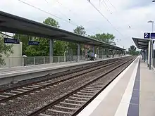 Frankfurt-Zeilsheim station (German: Bahnhof Frankfurt-Zeilsheim) is a railway station located in the Sindlingen district of Frankfurt, Germany, on the Main-Lahn Railway. It is served by line S2 of the Rhine-Main S-Bahn. The station opened on 13 May 2007 and is classified by Deutsche Bahn as a category 5 station.[1]