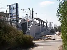 The Frankfurt City Council authorised the preliminary planning for the construction of the station on 29 April 1999 after several years of preparatory work.[4] Construction of the project started in January 2006. Originally, it was planned to open Zeilsheim station at the timetable change of 10 December 2006, but significant delays and mishaps during the construction led the opening to be postponed to the spring of 2007. It was eventually opened on 13 May 2007. Thus the terms of the annexation agreement of 1928 were fulfilled after 79 years.