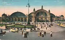 In 1924 the building was extended with two outer halls in Neoclassical style. The number of tracks increased to 25 (tracks 1 to 24 and 1a). Reliefs with motifs of the Wandervogel movement were installed at the southern entrance.