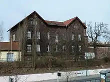 The first Frankfurt train station was a built is a terminal station with one platform for departures and arrivals and stabling for passenger traffic. The station building was on the north side of the tracks. At the end of the platform on the east side of the station there was a shed for wagons, locomotives and freight and a mail handling facility. After the construction of the through station workshop facilities were built on the site. The mail handling facility became a residence for rail officials and the passenger station building was used for administrative purposes. It was destroyed in an air raid in 1945. One of the buildings (Bahnhofstrasse 7) built as a workshop in the mid-1850s has been preserved and is a listed building.[14]