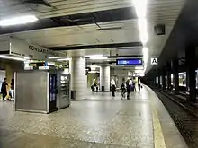 As in the case of Hauptwache station, Konstablerwache station has a large distribution level, called level B. In addition to giving access to the platforms, it serves mainly as a shopping mall and as a road underpass. Below this is a section of a north-south road tunnel that was never completed. One floor below, on level C, is the three-platform station for U-Bahn lines U4 and U5. The western track is used by line U5 towards Frankfurt Hauptbahnhof, the middle track is used by line U4 towards Bockenheimer Warte. The eastern track is used by both line U5 towards Preungesheim and U4 towards Seckbach Landstraße.