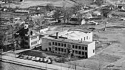 ![]() School (left, 1905) and High School (right, 1926), from northwest in 1947 | |