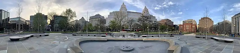 ![]() Franklin Square in 2022. One Franklin Square, the tallest commercial building in Washington, D.C., and the Franklin School, are visible in the background. | |