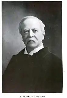 Franklin Townsend (1821–1898) was descended from Henry Townsend, one of the founders of Oyster Bay, New York. He was a 19th-century industrialist, active in his family's iron business which was a branch of the Stirling Iron Works, the maker of the Hudson River Chain that prevented the British Royal Navy from sailing up the Hudson River during the American Revolutionary War. He was active in Albany politics, serving as an alderman and one term as mayor. He also served as Adjutant General of New York from 1869 to 1873.
