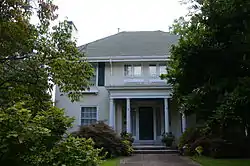 The Frauenthal House is a historic house in Little Rock, Arkansas. It is a two-story stuccoed structure, three bays wide, with a terra cotta hip roof. Its front entry is sheltered by a Colonial Revival portico, supported by fluted Doric columns and topped by an iron railing. The entrance has a half-glass door and is flanked by sidelight windows. It was designed in 1919 by Thompson & Harding and built for Charles Frauenthal.[2]