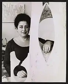 She returned to San Francisco in the early 1940s.[3] Her first job was designing plastic molds for an office machinery factory in Emeryville.[2] Early in her career she worked in collaboration with architects and created functional acrylic decorative objects for the home, including Lucite doorknobs, candle holders, trays, and lighting accessories.[1][3]
