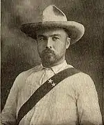 Funston played the key role in planning and carrying out the capture of Filipino President Emilio Aguinaldo on March 23, 1901, at Palanan.[7] The capture of Aguinaldo made Funston a national hero in the U.S., although the anti-imperialist movement criticized him when the details of Aguinaldo's capture became known. Funston's party, escorted by a company of Macabebe Scouts, had gained access to Aguinaldo's camp by posing as prisoners of those same Macabebe scouts. Funston's mission to capture Aguinaldo brought him a Regular Army commission just as he was scheduled to be mustered out of the volunteer service and, at only 35 years old, Funston was appointed a brigadier general in the Regular Army in recognition of his capture of Aguinaldo.