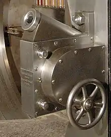 Frederick S. Holmes was an American safe and vault engineer[1] and inventor who designed the largest vaults in the world. During his career, Holmes designed hundreds of vaults throughout the United States, Canada and Japan from 1895[2] to 1941. The majority of Holmes designed vaults are located in New York's Financial District; many are publicly accessible and in buildings on the National Register of Historic Places. His name is engraved on the builder's plaques, typically located on the encased jamb controls of these vaults.