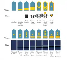 300 Squadron's badge has "CCC" meaning "300" in Roman numerals. It was the first Polish RAF squadron formed. It combines the coats of arms of both Poland and England – it has the Polish White Eagle "Orzeł Biały" (an eagle argent armed, crowned) and it has the English Lion (a lion passant guardant, crowned).