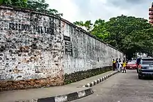 Broad Street Prison was established after Britain made Lagos a Colony in 1861 (see Lagos Treaty of Cession).[5] The initial prison structure was built in 1882 with mud walls and grass thatch but did not last long because of sabotage from colonial government opponents. According to Theo Lawson, architect of Freedom Park, opponents of British colonialism in Lagos "kept throwing fire into it and setting it ablaze and so then in 1885 the colonial government imported bricks from England and rebuilt the prison".[5] The colonial government's expense on the prison in 1882 (£16,000) revealed the government's priority on law and order versus other initiatives such as education which the government spent £700 on.[5] The Colonial report for 1898 indicates that 676 males, 26 females, and 11 juveniles were imprisoned at Broad Street prison for the year.
