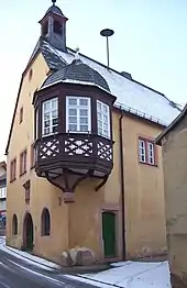 - Rathausstraße 9 – town hall; Renaissance building with ground-floor hall, timber-frame oriel window, marked 1603