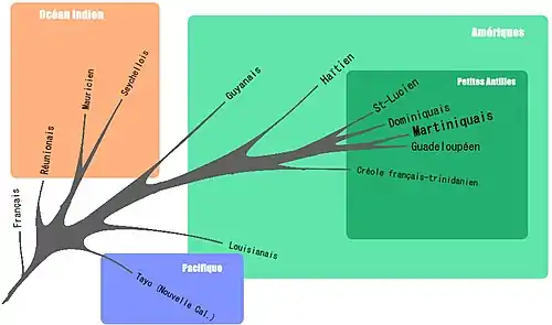 In the eighteenth century, Creole French was the first and native language of many different peoples including those of European origin in the West Indies.[2] French-based creole languages today are spoken natively by millions of people worldwide, primarily in the Americas and on archipelagos throughout the Indian Ocean.