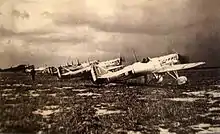 When the 11 November 1918 armistice came, French air power had expanded to 336 squadrons, 74 of which were SPAD fighter squadrons. France had 3,608 planes in service.[8] Confirmed claims of 2,049 destroyed enemy airplanes included 307 that had been brought down within French lines. French airmen had also destroyed 357 observation balloons.[14] However, 5,500 pilots and observers were killed out of the 17,300 engaged in the conflict, amounting to 31%.[15] A 1919 newspaper article reported that the French Air Force had suffered losses of 61%.[16]