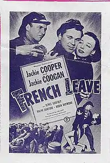 French Leave is a 1948 American comedy film directed by Frank McDonald and starring Jackie Cooper, Jackie Coogan and Renee Godfrey.[1] It is the sequel to the 1947 film Kilroy Was Here and is sometimes known by the alternative title of Kilroy on Deck.