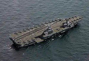 The FY2008 French defence budget included the necessary funding, €3 billion, for the ship.[5] However, in April 2008 French Defence Minister Herve Morin cast doubt over plans for a second aircraft carrier, citing a cash crunch and the fact that rising oil prices put the question of the propulsion back on the table, and said a decision would be taken soon.[6] Further doubts were cast on the project on 21 June 2008 when then French President Nicolas Sarkozy decided to suspend co-operation with Britain on the aircraft carrier. Sarkozy stated that a final decision on France building a second carrier would be taken by 2012.