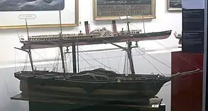 ![]() Scale model of Sésostris on display at the Musée national de la Marine in Paris | |