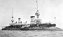 Masséna was laid down at the Ateliers et Chantiers de la Loire shipyard in September 1892 and launched nearly three years later on 24 July 1895. She was completed in June 1898 and entered service with the French fleet. Throughout the ship's peacetime career, she was occupied with routine training exercises that included gunnery training, combined maneuvers with torpedo boats and submarines, and practicing attacking coastal fortifications.[5][13] The ship was commissioned in time for the Northern Squadron maneuvers conducted in July 1898.[14] She was assigned as the flagship of the Northern Squadron and flew the flag of Vice Admiral Ménard. The Northern Squadron conducted annual training exercises in June; the following month, they joined the Mediterranean Squadron for combined fleet maneuvers.[15]