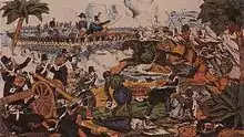 In the First Battle of Blida, the Berber-Algerian forces led by Mohamed Ben Zaamoum defeated the French army with minimal casualties.[31] The French forces were strategically ambushed by the Algerians, who welcomed them at first and attacked them from the mountain, in a sudden and vigorous manner, soon after.[32]