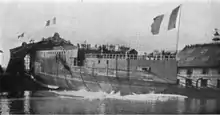 After returning to service on 12 October 1928, the ship was assigned as a training ship for cadets from the École Navale (Naval Academy).[9][16] Then-Captain François Darlan commanded the ship in 1928,[17] during her first training cruise overseas, during which ship as far as California in the United States, returning to France the following year.[18] In 1929, Edgar Quinet underwent an overhaul;[19] during this modernization she was fitted with equipment to handle floatplanes for reconnaissance purposes.[20] On 4 January 1930, Edgar Quinet ran aground off the coast of Algeria west of Oran and proved to be a total loss.[21] She sank five days later.[9]