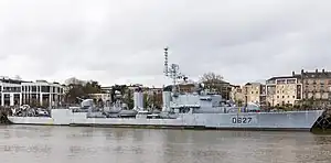 On 2 March 1962, Maillé-Brézé, along with another four destroyers, landed fresh troops at Algiers to fight the OAS upsurge.[2] Assisted by her sister ship Surcouf, she was about to shell the OAS-held quarter of Bab-el-Oued when a counter-order called the operation off. The destroyers instead took battle stations close to the shore as a deterrent.[3]