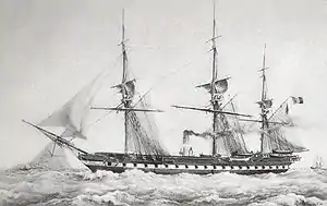 Audacieuse served between France and the Far East, notable ferrying ambassador Jean-Baptiste Louis Gros to China in 1857 and bringing guns from the Taku Forts to France.[1]