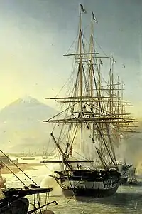 ![]() Gloire leading the French line of battle at the Battle of Veracruz (detail of a painting by Horace Vernet). | |
