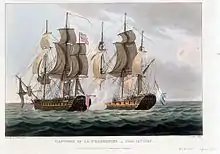 Proserpine was stationed at Saint Domingue from 1786 until 1788. In 1792, she was under Ensign Van Stabel.[6] From 1793, she served as a commerce raider under Captain Jean-Baptiste Perrée, notably capturing the 32-gun Dutch frigate Vigilante and several merchantmen of a convoy that Vigilante was escorting.[7]