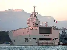 Mistral (L9013) is an amphibious assault ship, a type of helicopter carrier, of the French Navy. She is the fourth vessel to bear the name, and is the lead ship of the Mistral-class amphibious assault ships.