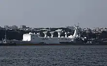 The ship was ordered on 25 November 1988 as a replacement for the aging Henri Poincaré.[1][4] The ship's keel was laid down on 26 March 1990 with the yard number H39 by Chantiers de l'Atlantique at their yard in Saint-Nazaire, France.[2] Monge, named for the 18th century mathematician Gaspard Monge, was launched on 6 October 1990.[1][4] Monge entered service with the French Navy on 5 November 1992, given the hull number A 601, and is based at Brest, France.[1][4]