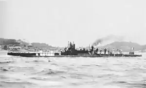 On the surface, the boat was powered by a pair of three-cylinder triple-expansion steam engines, each driving one propeller shaft using steam provided by two pairs of Maurice boilers that had a working pressure of 30 kg/cm2 (2,942 kPa; 427 psi). The engines were designed to develop a total of 1,300 metric horsepower (956 kW) and a maximum speed of 13.5 knots (25.0 km/h; 15.5 mph).[3] Submerged, the steam engines could be supplemented by a pair of 100-metric-horsepower (74 kW) electric motors using electricity from 120 Tudor batteries.[6]