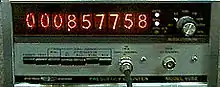 A frequency counter is an electronic instrument, or component of one, that is used for measuring frequency. Frequency counters usually measure the number of cycles of oscillation, or pulses per second in a periodic electronic signal. Such an instrument is sometimes referred to as a cymometer, particularly one of Chinese manufacture.